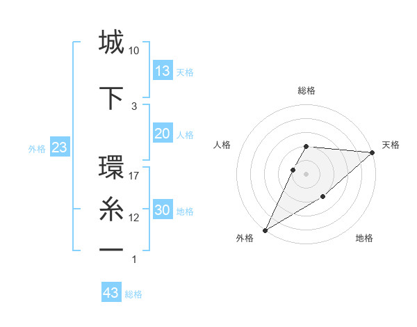 城下 環糸一さんを姓名の画数から五運を鑑定