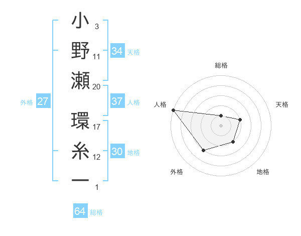 小野瀬 環糸一さんを姓名の画数から五運を鑑定