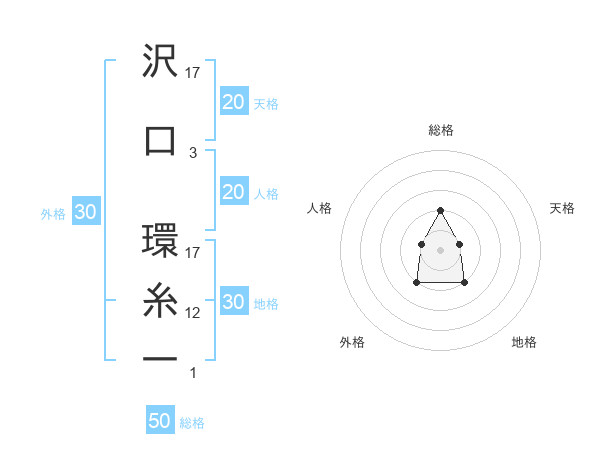 沢口 環糸一さんの総格は50画の2点!