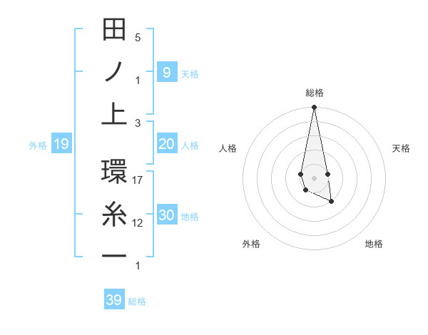 田ノ上 環糸一さんの総格は39画の5点!