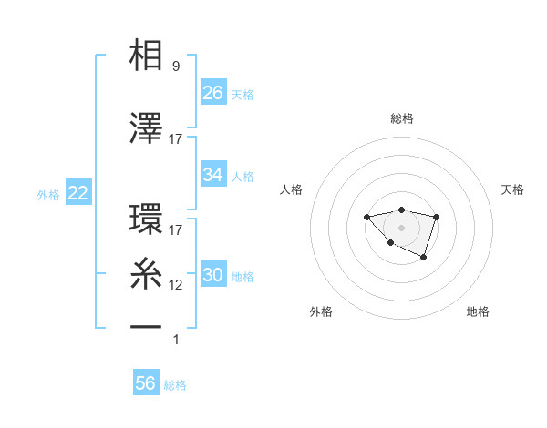 相澤 環糸一さんを姓名の画数から五運を鑑定