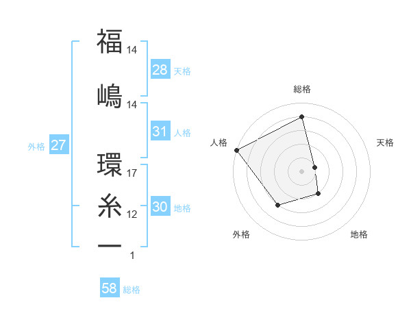 福嶋 環糸一さんの総格は58画の4点!