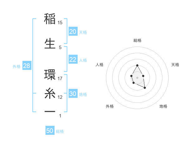 稲生 環糸一さんの総格は50画の2点!