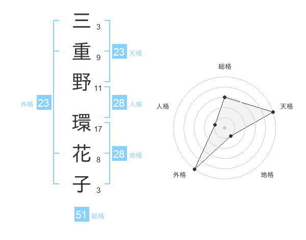 三重野 環花子さんを姓名の画数から五運を鑑定