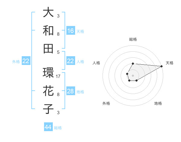 大和田 環花子さんの人格は22画の1点!