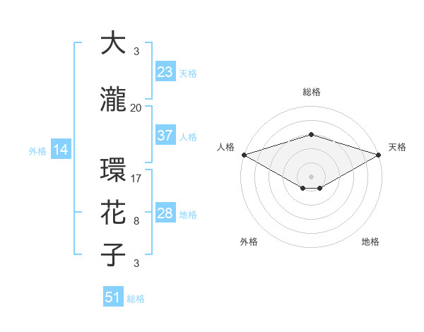 大瀧 環花子さんを姓名の画数から五運を鑑定