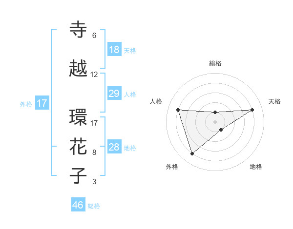 寺越 環花子さんを姓名の画数から五運を鑑定