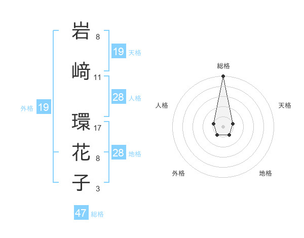 岩﨑 環花子さんを姓名の画数から五運を鑑定