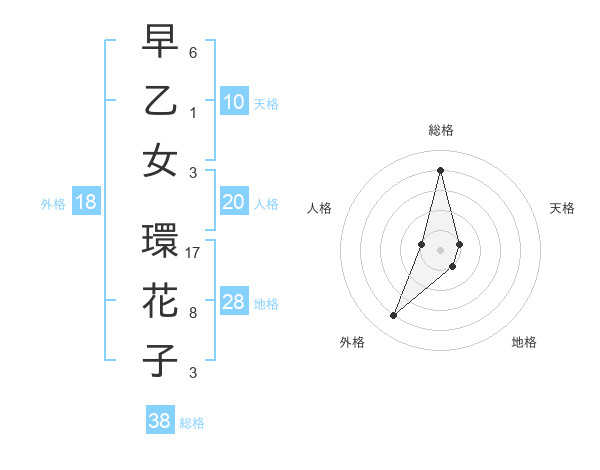 早乙女 環花子さんを姓名の画数から五運を鑑定