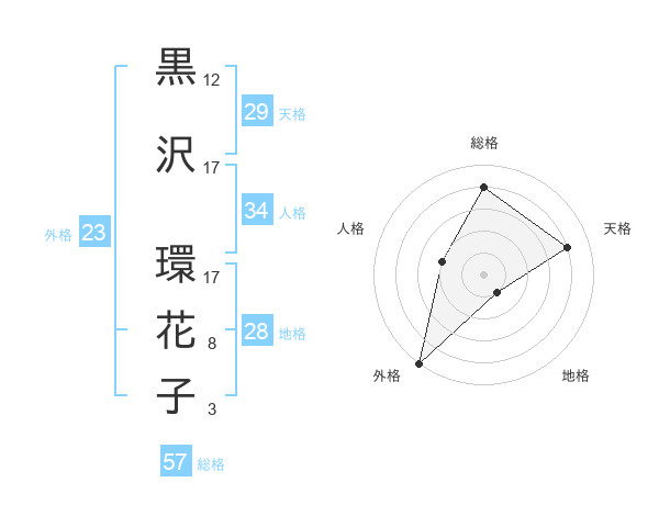 黒沢 環花子さんを姓名の画数から五運を鑑定