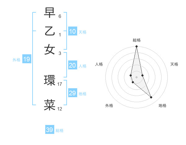 早乙女 環菜さんの総格は39画の5点!