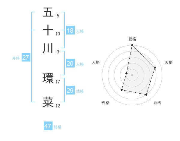 五十川 環菜さんの総格は47画の5点!