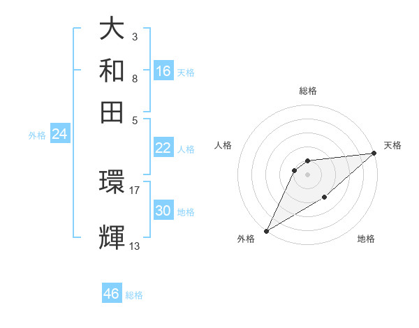 大和田 環輝さんを姓名の画数から五運を鑑定