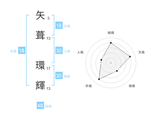 矢葺 環輝さんの総格は48画の4点!