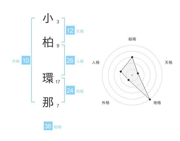 小柏 環那さんの天格は12画の1点!