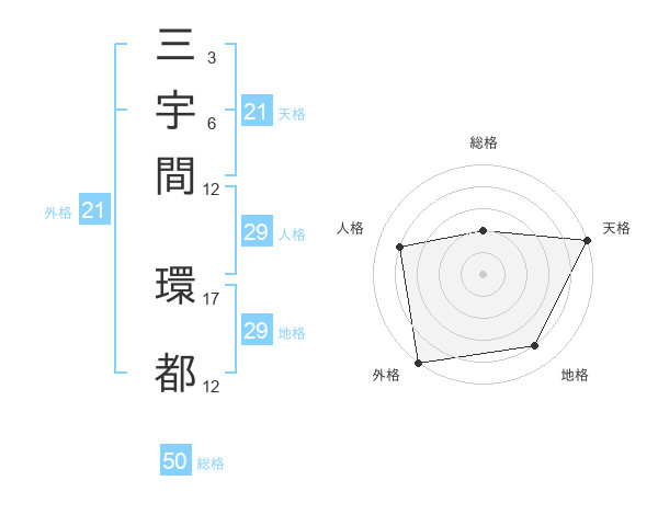 三宇間 環都さんを姓名の画数から五運を鑑定