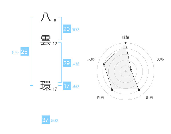 八雲 環さんの天格は20画の1点!