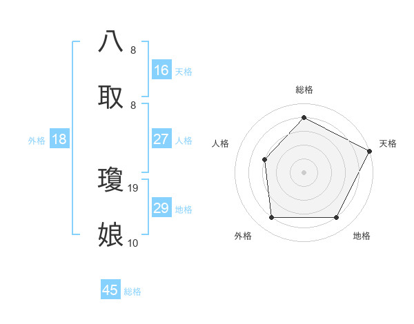 八取 瓊娘さんの総格は45画の4点!