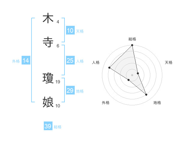 木寺 瓊娘さんの総格は39画の5点!