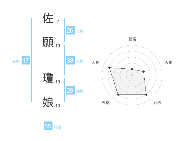 佐願 瓊娘さんを姓名の画数から五運を鑑定