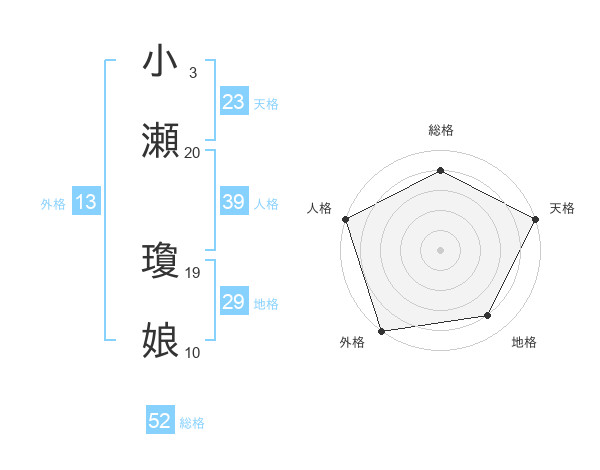 小瀬 瓊娘さんの外格は13画の5点!