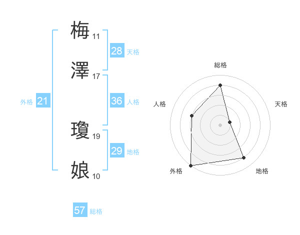 梅澤 瓊娘さんを姓名の画数から五運を鑑定