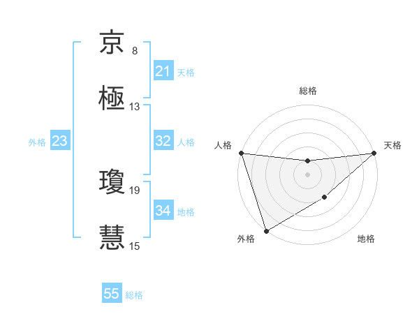 京極 瓊慧さんの外格は23画の5点!