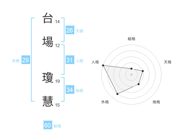 台場 瓊慧さんを姓名の画数から五運を鑑定