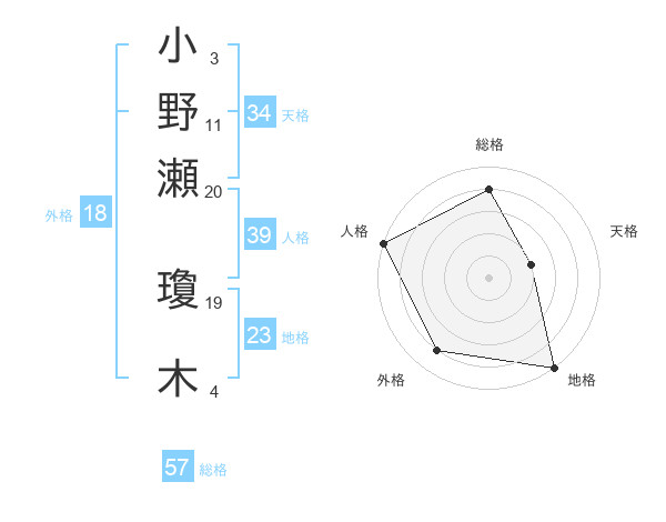 小野瀬 瓊木さんを姓名の画数から五運を鑑定