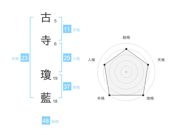 古寺 瓊藍さんの外格は23画の5点!