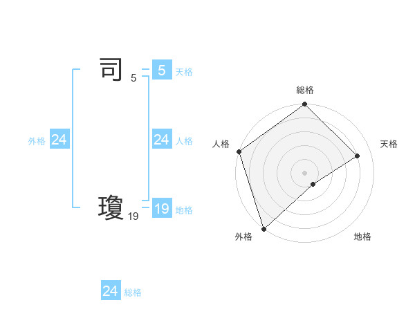 司 瓊さんの外格は24画の5点!