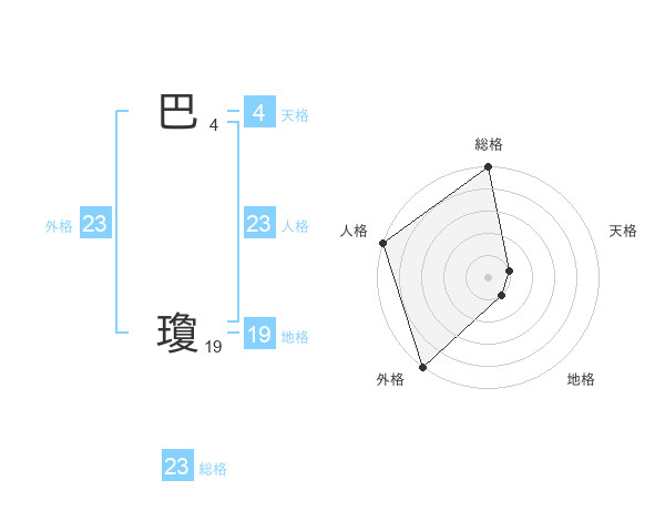 巴 瓊さんの外格は23画の5点!