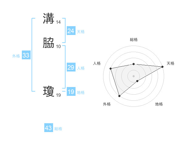 溝脇 瓊さんの総格は43画の2点!