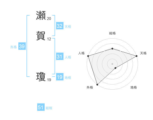 瀬賀 瓊さんの総格は51画の3点!