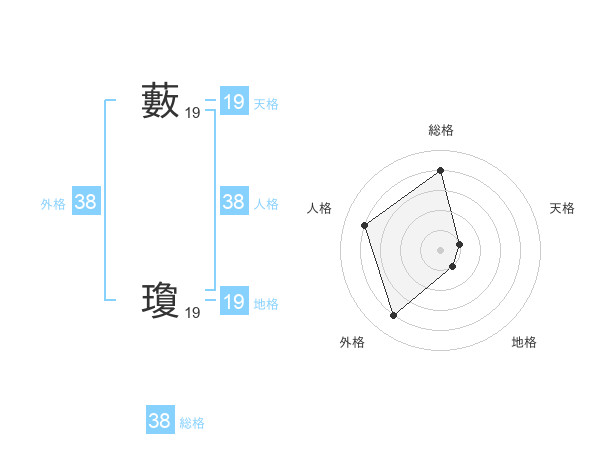 藪 瓊さんの総格は38画の4点!