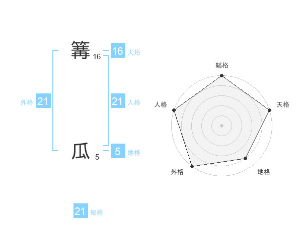 篝 瓜さんの天格は16画の5点!