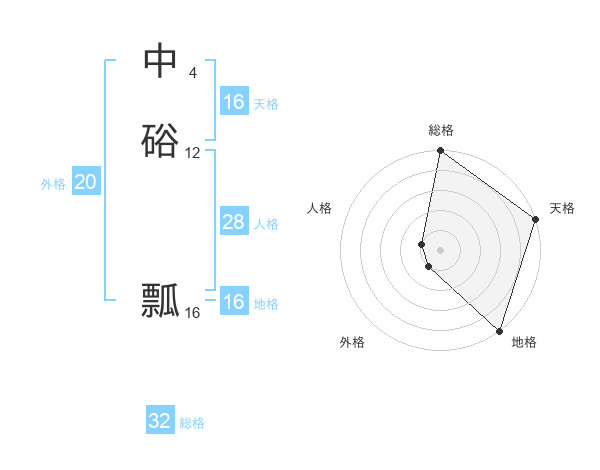 中硲 瓢さんの総格は32画の5点!