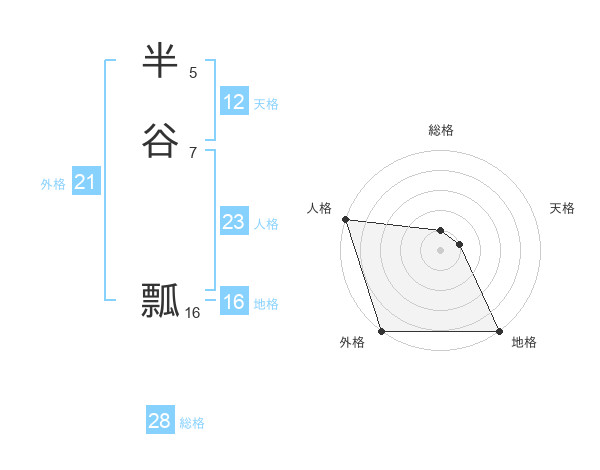 半谷 瓢さんの外格は21画の5点!