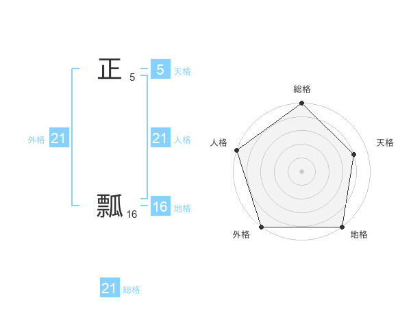 正 瓢さんの総格は21画の5点