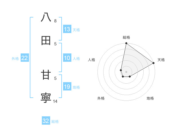 八田 甘寧さんの総格は32画の5点!