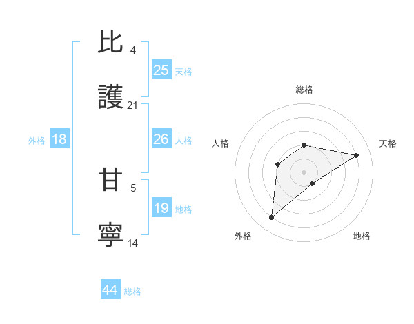 比護 甘寧さんの天格は25画の4点!