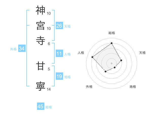 神宮寺 甘寧さんの総格は45画の4点!