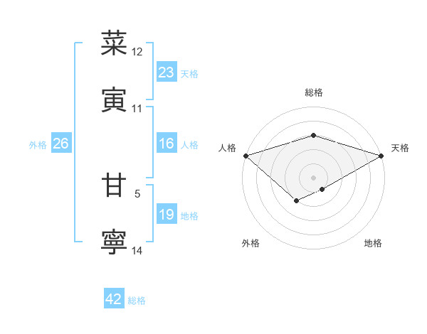 菜寅 甘寧さんの天格は23画の5点!