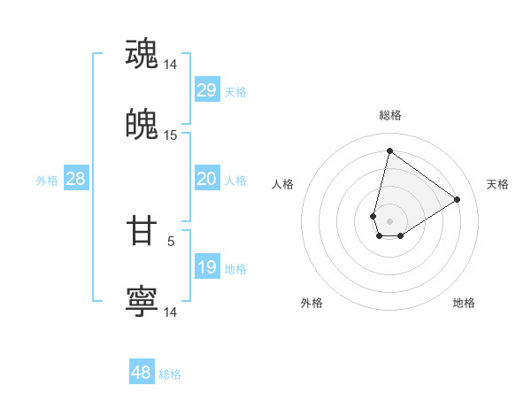 魂魄 甘寧さんを姓名の画数から五運を鑑定