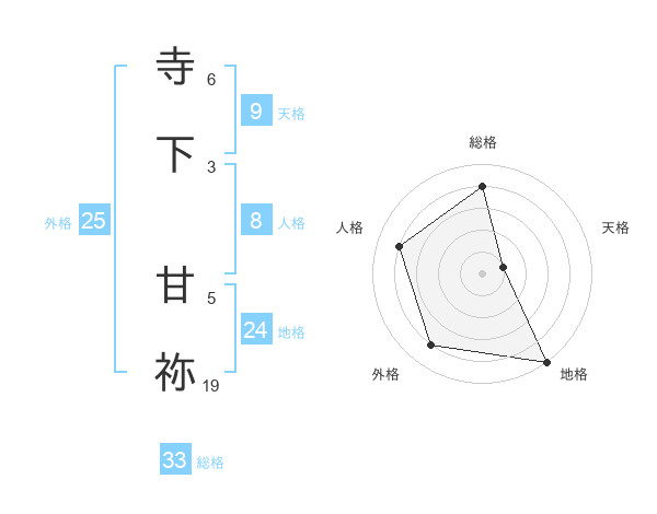 寺下 甘祢さんの外格は25画の4点!