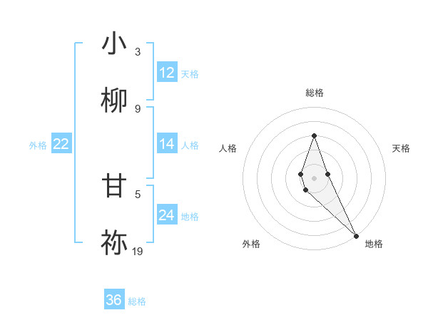 小柳 甘祢さんの天格は12画の1点!