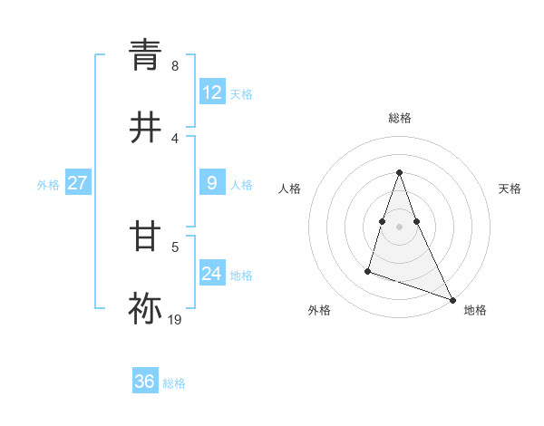 青井 甘祢さんを姓名の画数から五運を鑑定