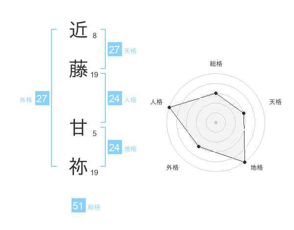 近藤 甘祢さんを姓名の画数から五運を鑑定