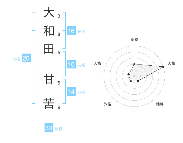 大和田 甘苦さんを姓名の画数から五運を鑑定