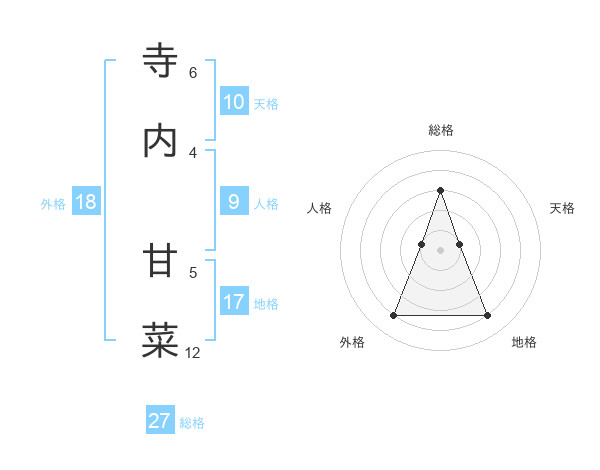 寺内 甘菜さんの総格は27画の3点!